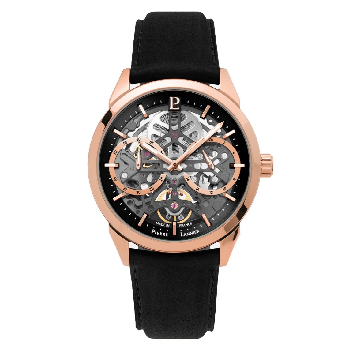 Monarck モナーク 自動巻き メンズ 腕時計 スケルトン 革ベルト ピンクゴールド 黒文字盤 ブラック