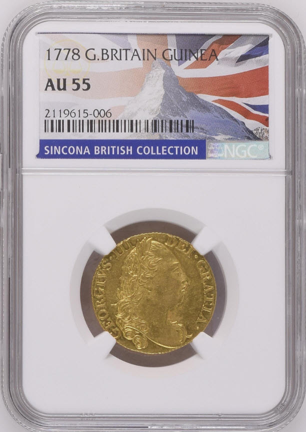 【レア度2-R2】グレートブリテン ジョージ3世 1778年 1ギニー金貨 NGC-AU55