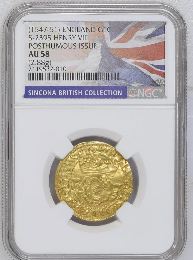 【動画あり】グレートブリテン 1547-51年 エドワード6世 ヘンリー8世名義 1クラウン金貨 NGC-AU58