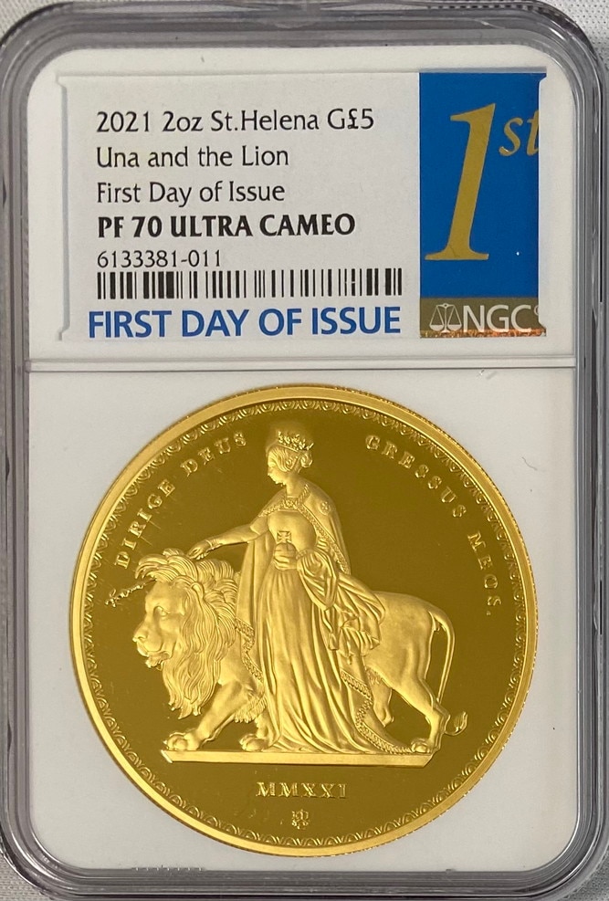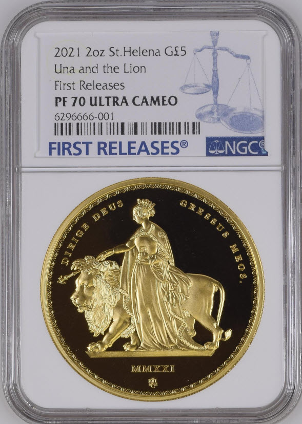 【動画あり】2021年グレートブリテン領セントヘレナ-エリザベス2世ウナとライオン5ポンドプルーフ金貨NGC-PF70UCAMファ...