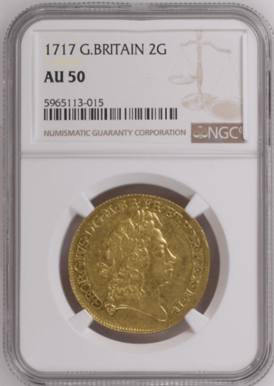 【レア度1-R1】グレートブリテン 1717年 ジョージ1世 2ギニー金貨 NGC-AU50