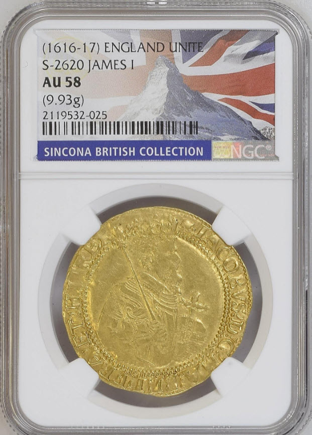 グレートブリテン 1616-1617年 ジェームズ1世 ゴールド・ユナイト金貨 NGC-AU58