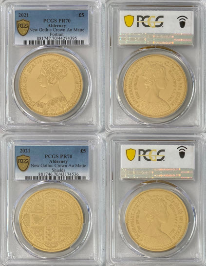 【予約商品】2枚組イギリスの王室属領オルダニー島エリザベス II 2021年5ポンドマットプルーフ金貨ニューゴシッククラウンPCG...