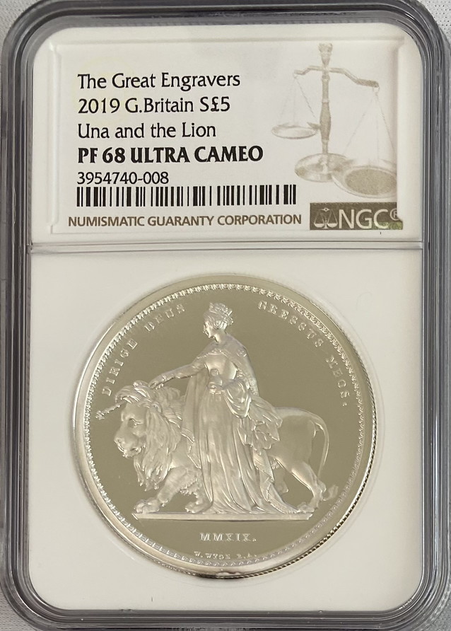 グレートブリテン2019年ウナとライオンプルーフ2オンス5ポンド銀貨NGC社PF68UCAM箱付き3954740-008