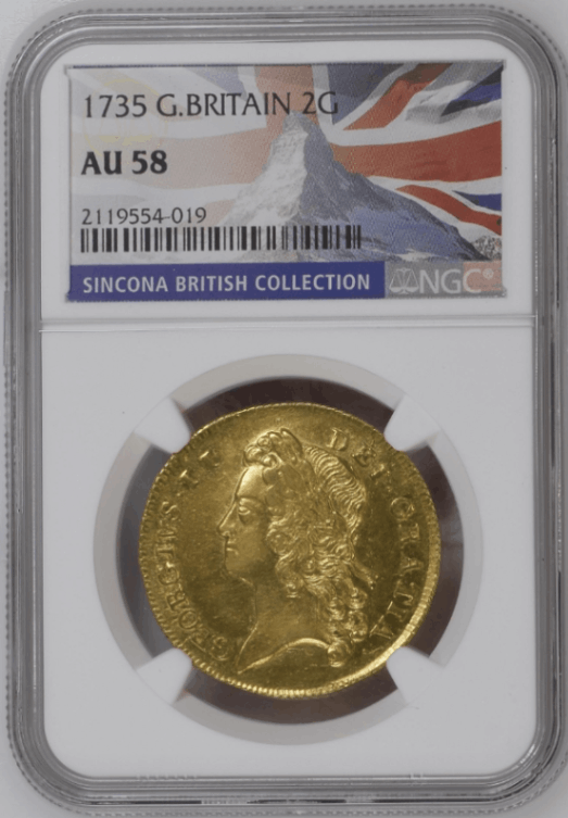 【動画あり】【レア度3-R3】グレートブリテン 1735年 ジョージ2世 2ギニー金貨 NGC-AU58