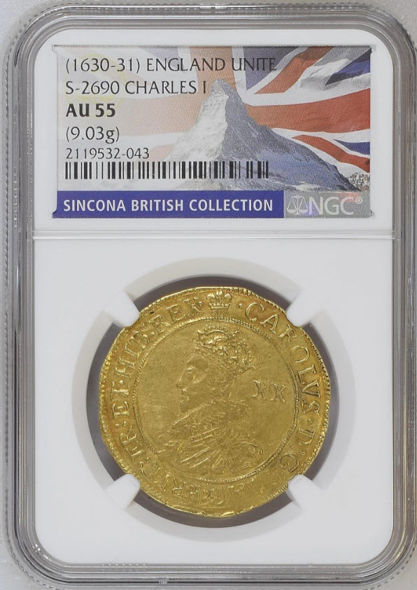 グレートブリテン チャールズ1世(1630-1631) ゴールド・ユナイト金貨NGC-AU55