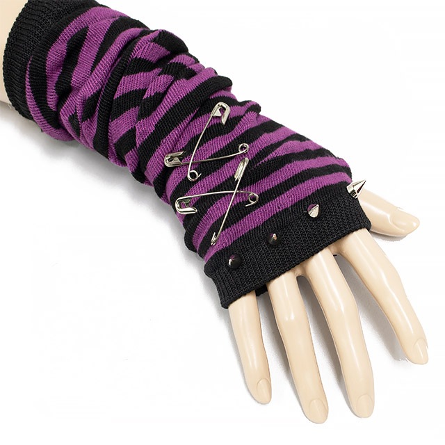 安ピン付ボーダーアームウォーマー【BLACK×PURPLE】 /リッスンセレクト