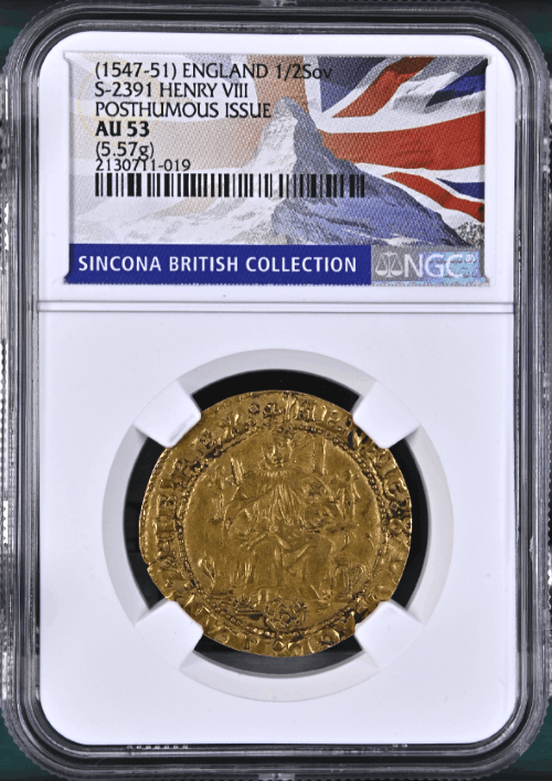 グレートブリテンエドワード6世ヘンリー8世名義1547-49年1/2ソブリン金貨NGC-MS62