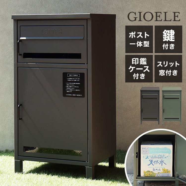 宅配ボックス 一戸建て用 ポスト 一体型 簡単設置 工事不要 大容量 アンカー固定可 2段 鍵付き ブラック アイボリー おしゃれ...