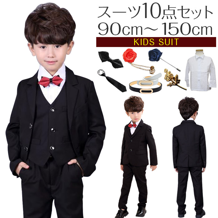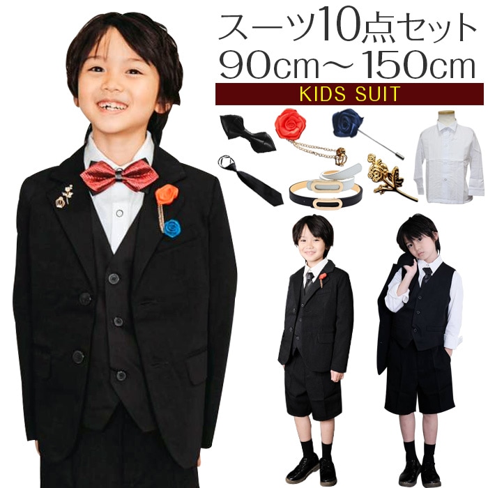 正午まで当日発送(土日祝除く) 送料無料 フォーマル ブラック スーツ 男の子 スーツ 10点セット/男の子 フォーマル[3ピース...