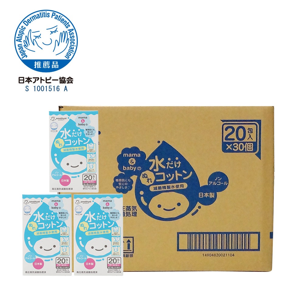 ママとベビーの水だけぬれコットン20包入×30個(1ケース) | 日本製 ※送料無料
