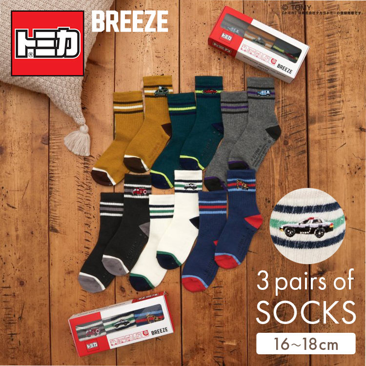 トミカ TOMICA 靴下 キッズ ソックス 男の子 子供 アンパサンド Ampersand コラボ 3足セット くつ下 16cm...
