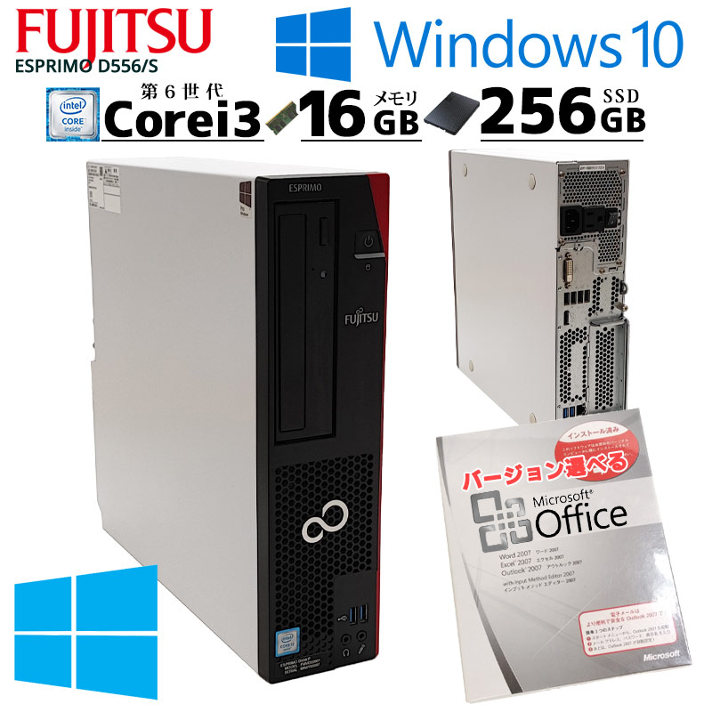 中古パソコン Microsoft Office付き 富士通 ESPRIMO D556/S Windows10Pro Core i3...