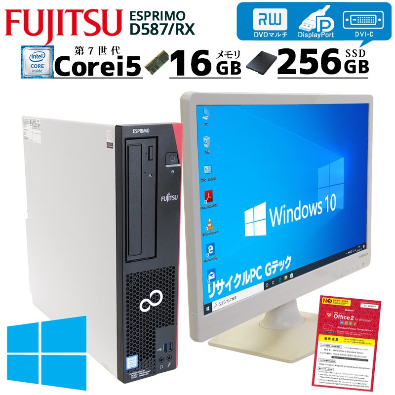 新品SSD搭載 中古パソコン 富士通 ESPRIMO D587/RX Windows10Pro Core i5 7500 メモリ1...