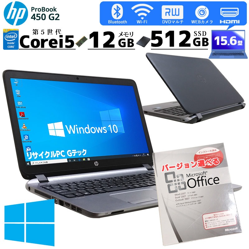 新品SSD 中古ノートパソコン Microsoft Office搭載 HP Probook 450 G2 Windows10 C...