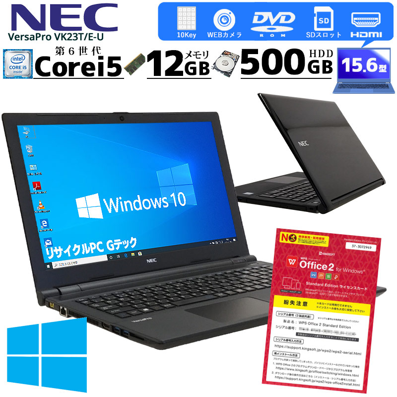 中古ノートパソコン NEC VersaPro VK23T/X-U Windows10Pro Corei5 6200U メモリ8G...