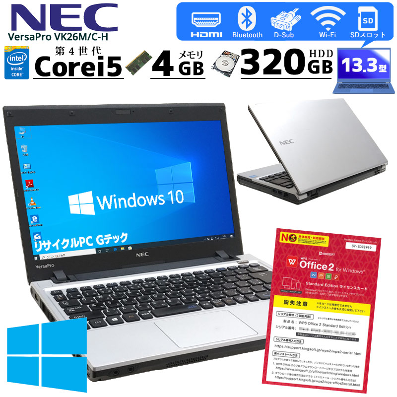 中古ノートパソコン NEC VersaPro VK26M/C-H Windows10 Corei5 4300M メモリ4GB HD...