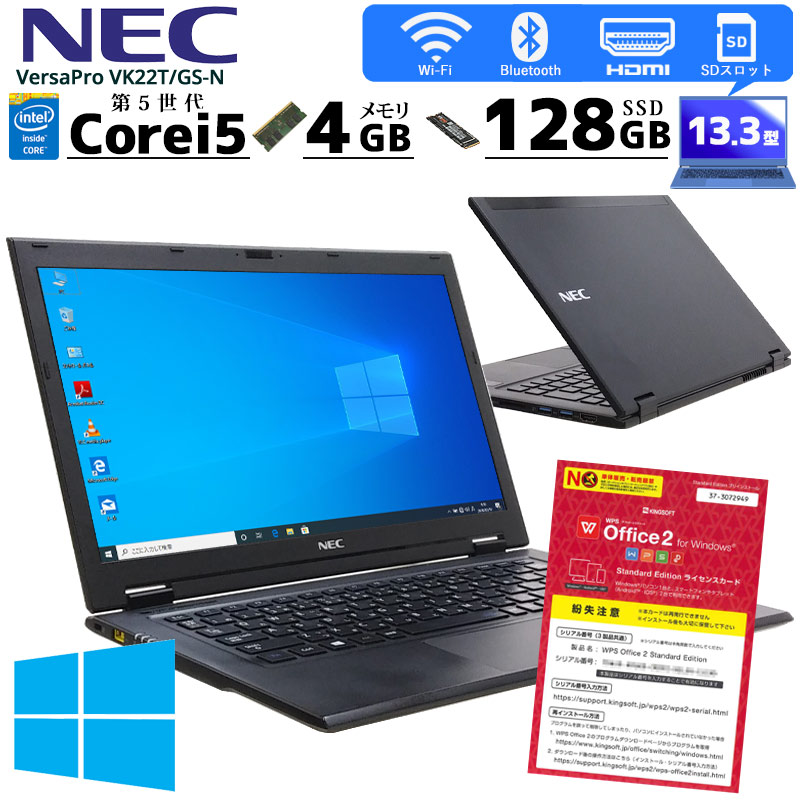 中古ノートパソコン NEC VersaPro VK22T/GS-N Windows10Pro Corei5 5200U メモリ4G...