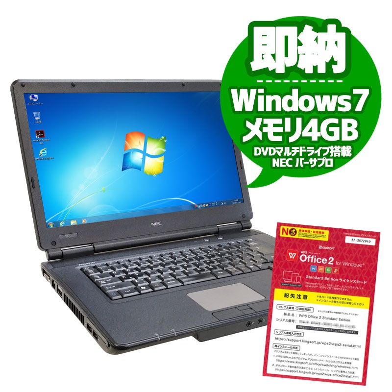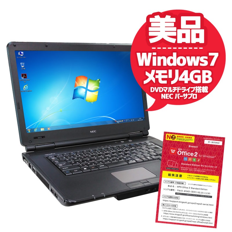 中古ノートパソコン NEC VersaPro VK23T/X-C Windows7 Corei5-2.3Ghz メモリ4GB HD...