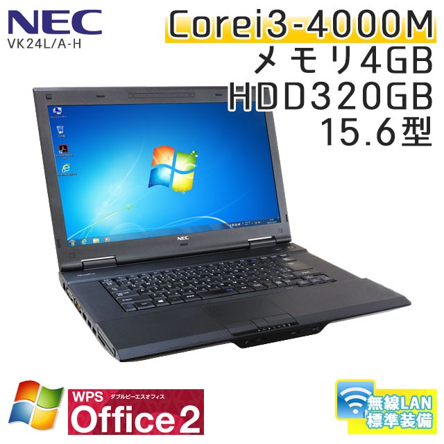 中古ノートパソコン NEC VersaPro VK24L/A-H Windows7 Corei3-2.4Ghz メモリ4GB HD...