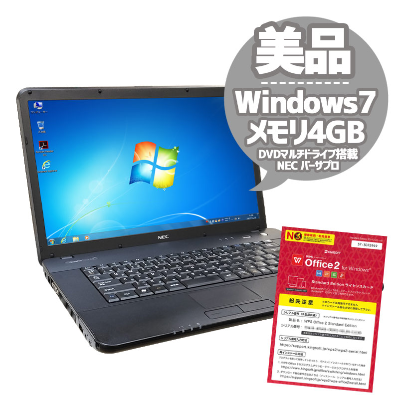中古ノートパソコン NEC VersaPro VK25M/X-C Windows7 Corei5 2520M メモリ4GB HDD...