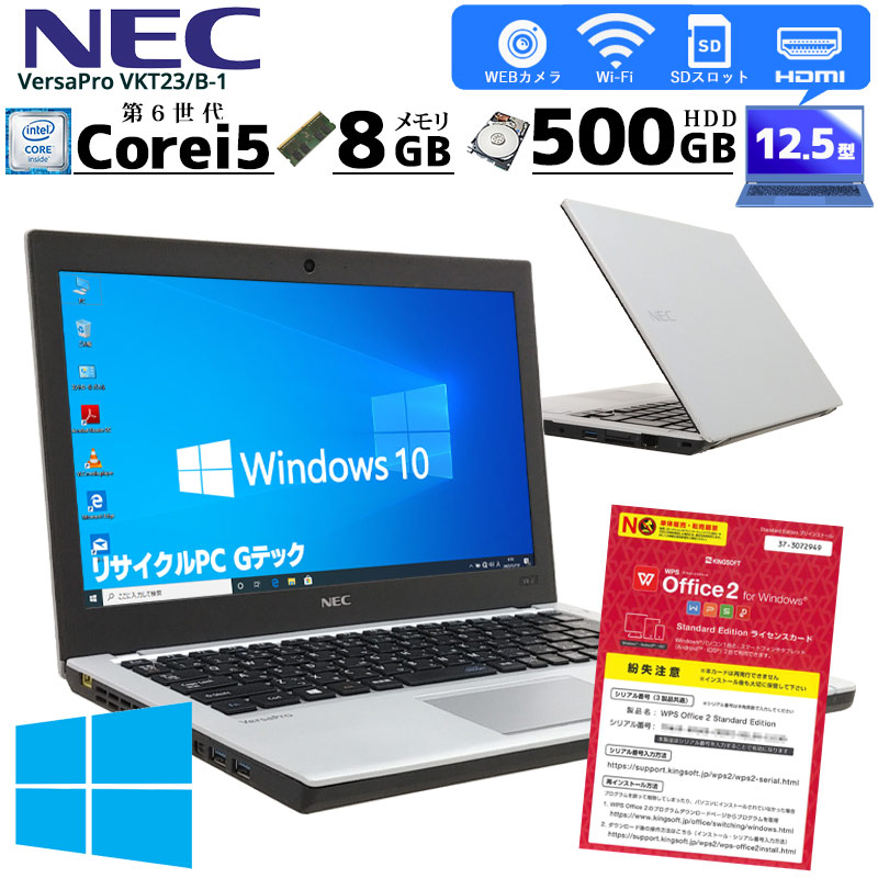 SSD搭載 中古ノートパソコン NEC VersaPro VKT23/B-1 Windows10Pro Corei5 6200U ...