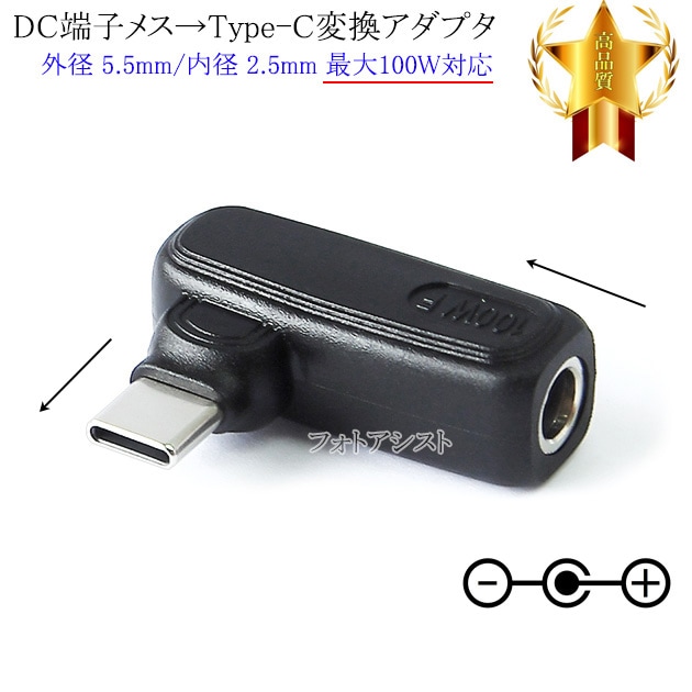 PC用ACアダプタDC端子メス→Type-C変換アダプタ 外径 5.5mm/内径 2.5mm (メス)からType-C端子 最...
