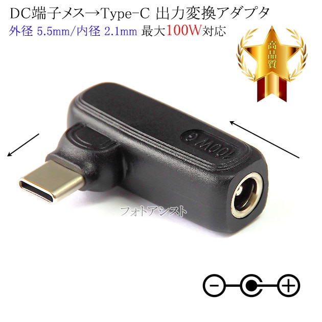 PC用ACアダプタDC端子メス→Type-C変換アダプタ 外径 5.5mm/内径 2.1mm (メス)からType-C端子 最...