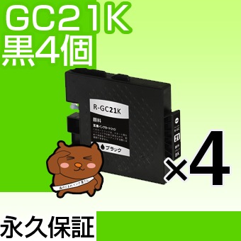 GC21 黒のみ4個セット RICOH(リコー)プリンター用 【永久保証】
