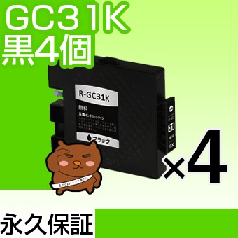 GC31 黒のみ4個セット RICOH(リコー)プリンター用 【永久保証】