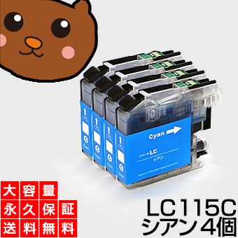 LC115C シアン4個 【LC113C増量】 【互換インクカートリッジ】 ブラザー LC115 【送料無料】【永久保証】 MFC...