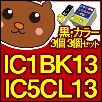 IC1BK13/IC5CL13/黒/ブラック/シアン/マゼンタ/イエロー/送料込/EP社/残量/メール便/再生/送料無料/5色セッ...