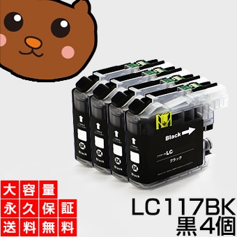 LC117BK ブラック/黒4個 【LC113BK増量】 【互換インクカートリッジ】 ブラザー LC117BKインク 【送料無料】...