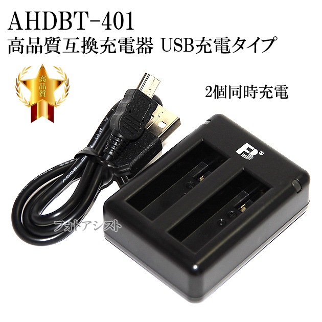 【互換品】 GOPro ゴープロ AHDBT-401 対応互換充電器 2個同時充電 (バッテリーチャージャー) AHBBP-401...