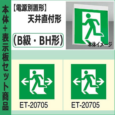 FBL-20702-LS17 + ET-20705(x2) || LED誘導灯セット 東芝 [本体:(電源別置形)天井直付形・天井...