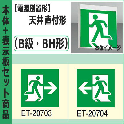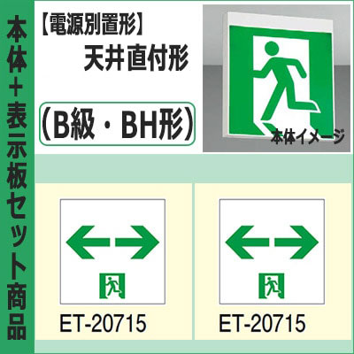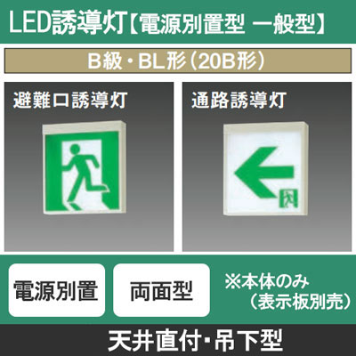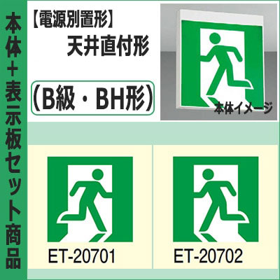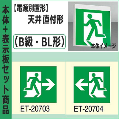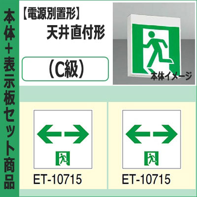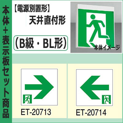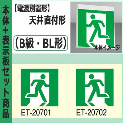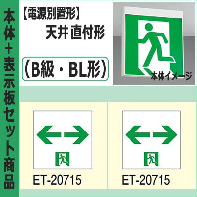 FBL-10702-LS17 + ET-10715(x2) || LED誘導灯セット 東芝 [本体:(電源別置形)天井直付形・天井...