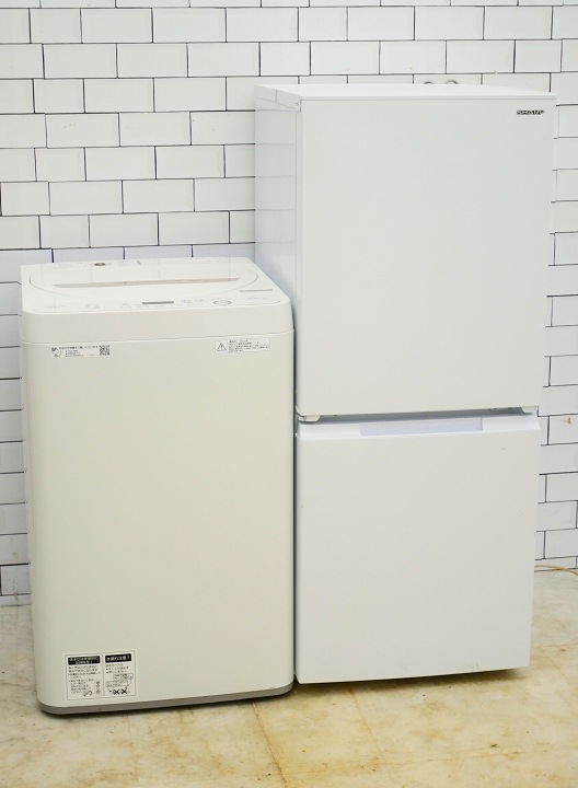 152L、4.5kg◆22年、22年◆シャープ、シャープ製◆(冷蔵庫、洗濯機)中古家電2点セット
