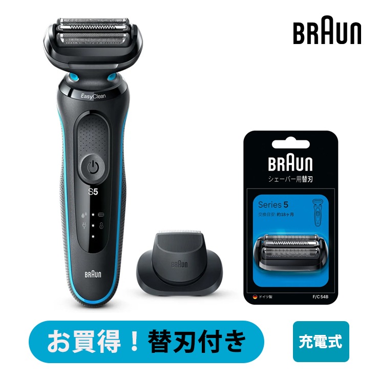 [51-M1200S-SP] 【特価セール】 密着シリーズ5 充電式シェーバー ミントブルー 替刃セット