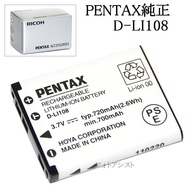 PENTAX ペンタックス D-LI108 リチウムイオンバッテリー充電池 国内純正品