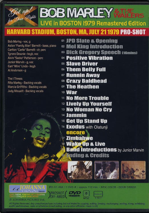 BOB MARLEY & THE WAILERS / BOSTON 1979 (1DVD-R) JOHANNA VISION ON...