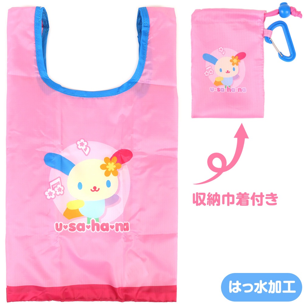 ウサハナ エコバッグ S 収納巾着付き カラビナ付き はっ水加工 マド ショッピングバッグ 折りたたみ サンリオ sanrio キ...