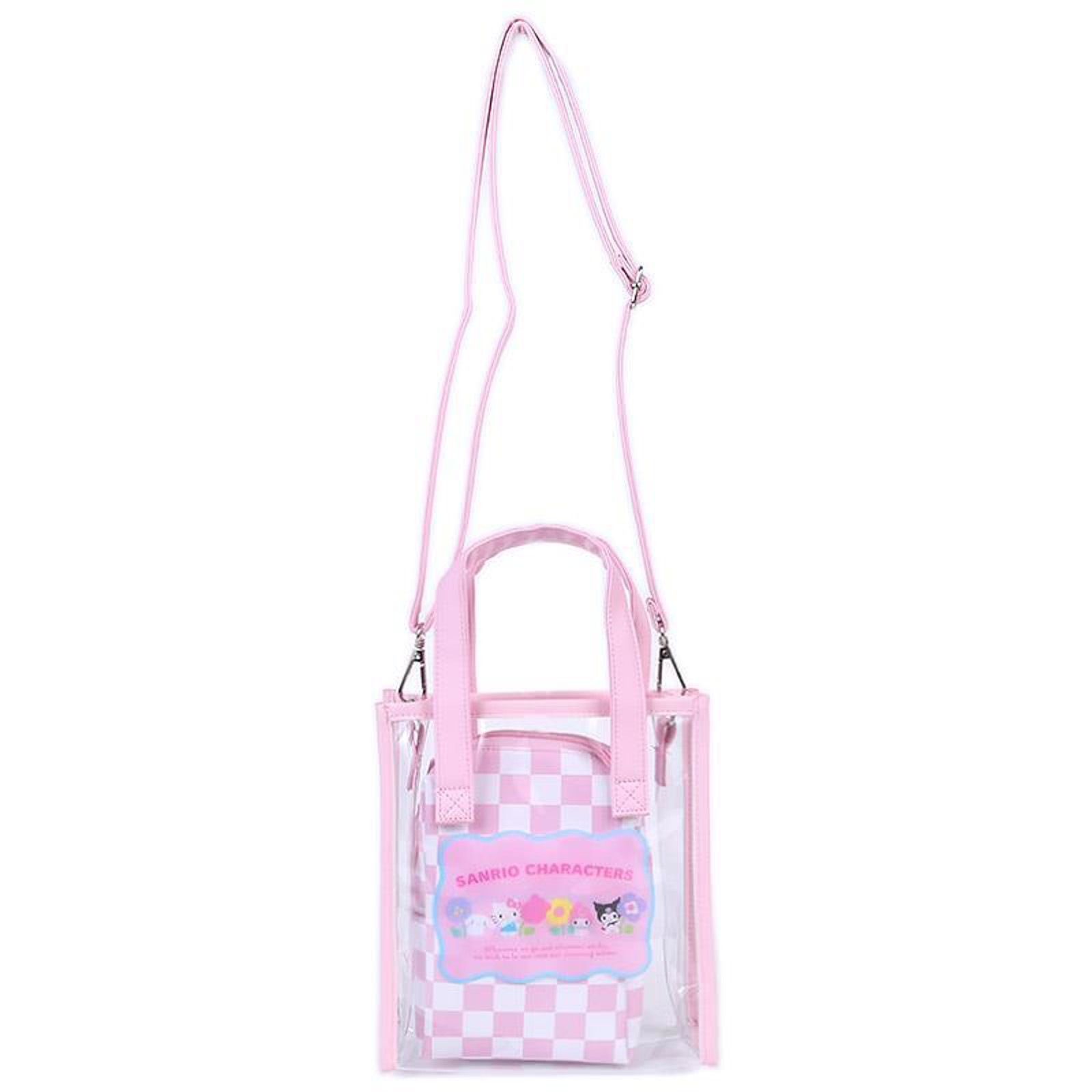 サンリオキャラクターズ クリア手提げバッグ ショルダー付き ショルダーバッグ ポーチ付き ミニトート ハンドバッグ パステルチェッ...