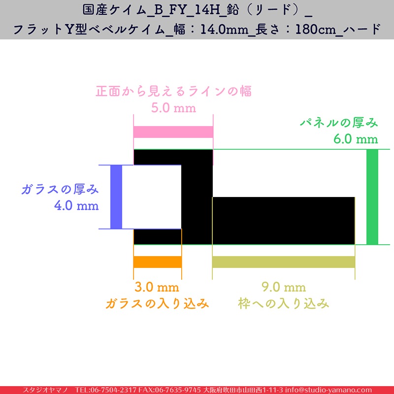 旧マツムラ_B_FY_14H_鉛(リード)_フラットY型ベベルケイム_幅:14mm_長さ:180cm_ハード_1箱(25本)