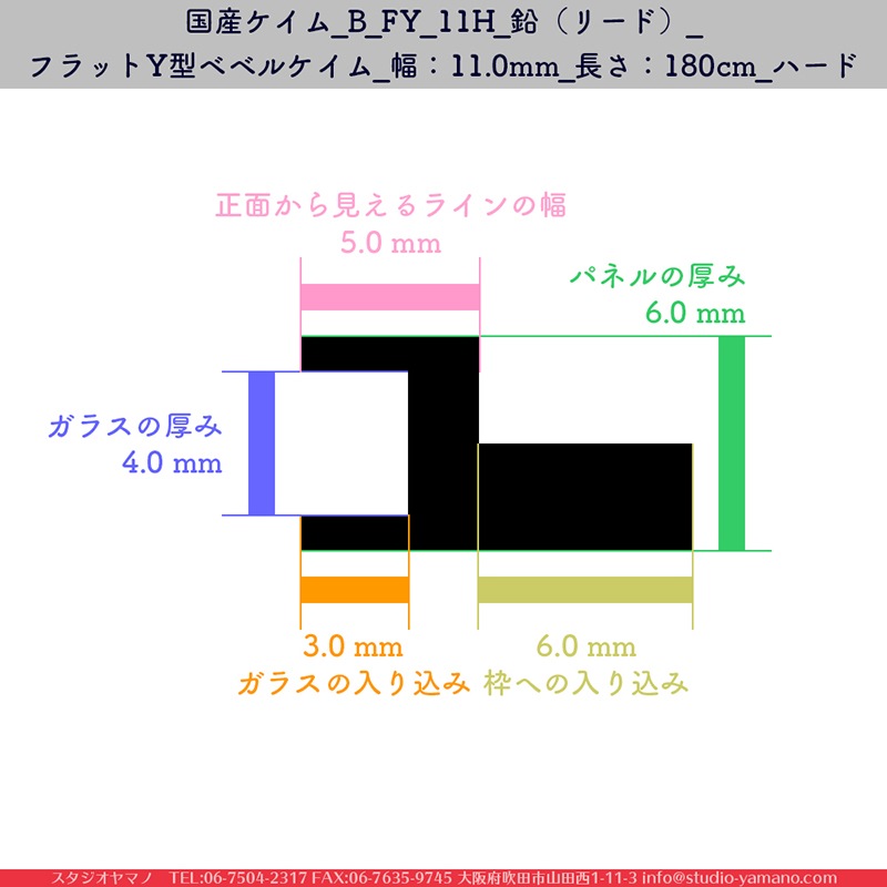 旧マツムラ_B_FY_11H_鉛(リード)_フラットY型ベベルケイム_幅:11mm_長さ:180cm_ハード_1箱(30本)