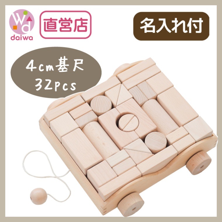 名入れ付き・積木車 《専用BOX*包装不可》 木のおもちゃ【木製おもちゃのだいわ公式店】