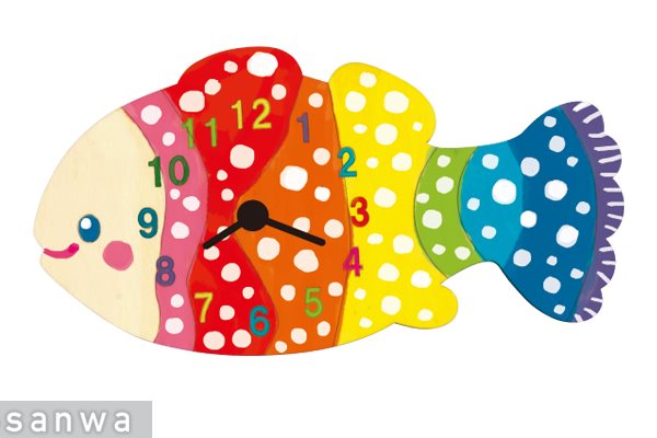 お絵描き魚型時計キット くまのみデザイン|自由に色塗りできる木製クラフト【完成サイズH10×W19cm】