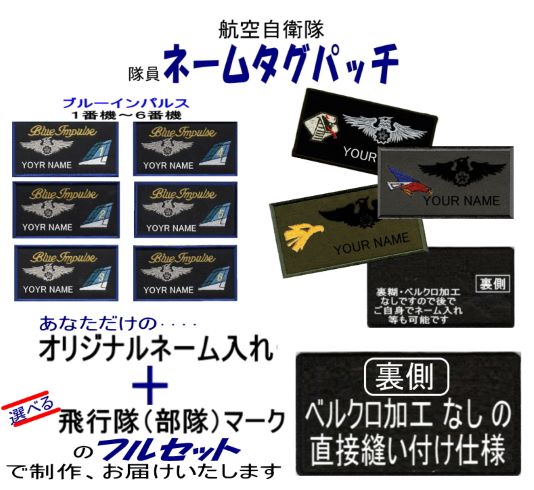 航空自衛隊 隊員ネームタグパッチ <フルセット> オリジナル名入れ+部隊マーク入れ ベルクロ加工無し 縫い付けタイプ