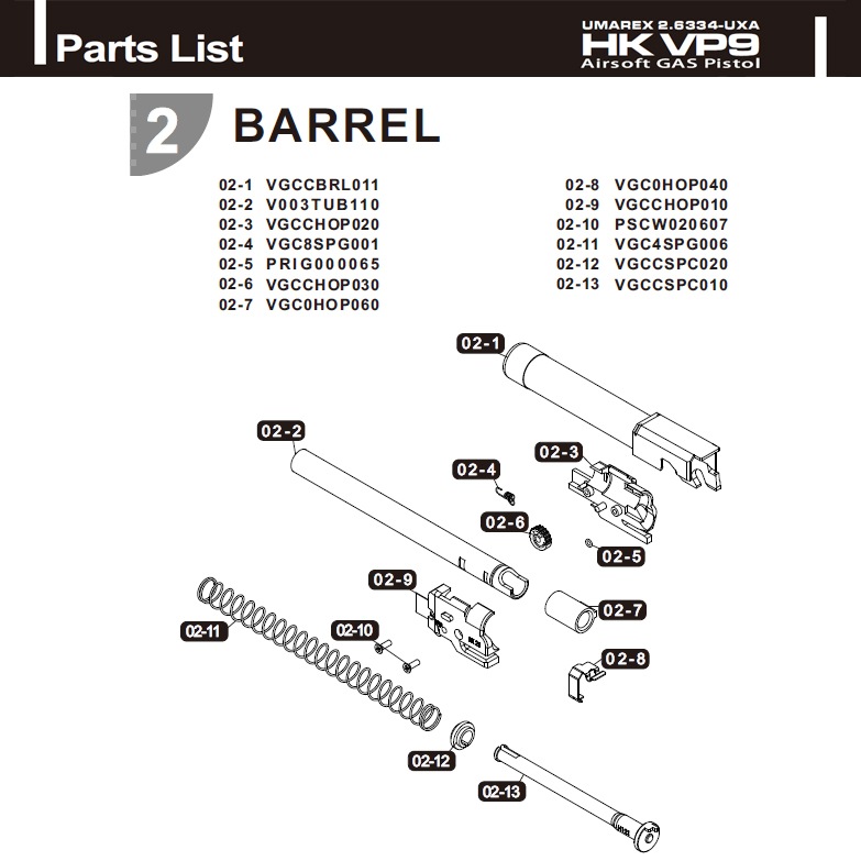 Umarex HK VP9パーツ/02-4 バレルホールドスプリング [VGC8SPG001]【品番:UM9-VP9-02-04】...
