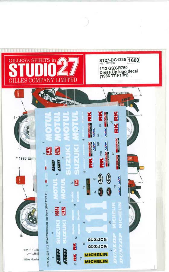 1/12 GSX-R750 Dress Up logo decal (1986 TT-F1 #1)for HasegawaSTUD...