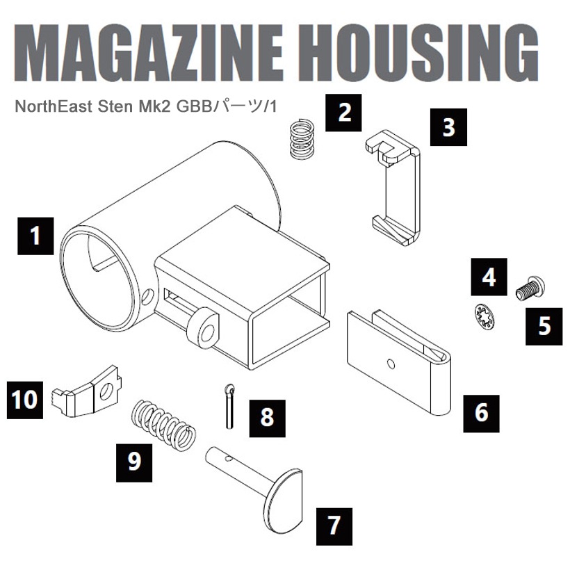 NorthEast Sten Mk2 GBBパーツ/1-08 ハウジングプランジャーピン【品番:NEA-STENMK2-1-08】...